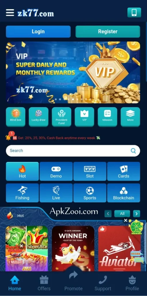 ZK77 slot is an online betting and gambling platform. It is a mobile gaming application popular in Pakistan, offering real money casino style games such as teen Patti, rummy, slots and dragon vs tiger. Players can earn cash rewards through playing different games and referrals with support for local payment methods like easy paisa, jazz cash or bank account. users can earn commission by inviting friends, some apps also offer lifetime income from referrals.